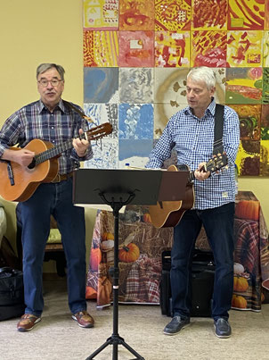 Für Stimmung sorgten Jürgen und Konrad mit bekannten Liedern, die viele mitsangen. Auch das traditionelle „Ein Prosit“ durfte nicht fehlen und lud zu geselligen Pausen ein.