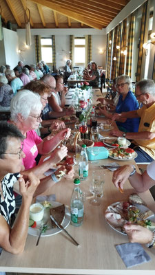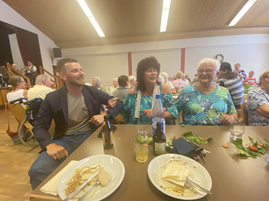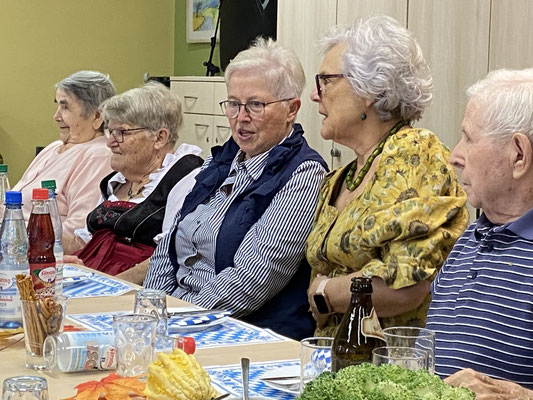 Zwischen den Musikstücken sorgten humorvolle Beiträge für viele Lacher. Die heitere Stimmung war förmlich ansteckend und bald herrschte eine ausgelassene Atmosphäre an allen Tischen. Auch das leibliche Wohl kam nicht zu kurz: Das reichhaltige Buffet mit hausgemachten Salaten und frisch gegrillter Bratwurst ließ keine Wünsche offen – es schmeckte einfach köstlich. Viel zu schnell verging dieser schöne Nachmittag.