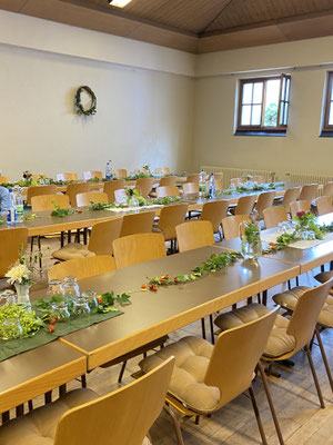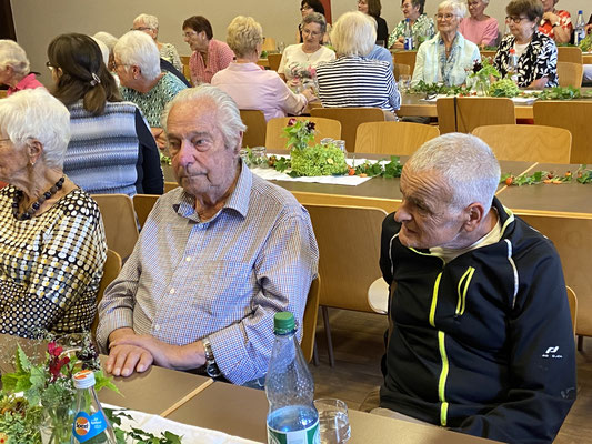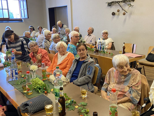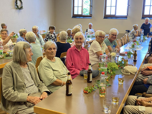 Am Mittwoch den 23. Juli trafen wir uns zum Sommerfest der UHUs. Ursprünglich war eine Feier im Pfarrgarten geplant, doch wegen der unsicheren Wetterlage verlegten wir das Fest kurzerhand in den Pfarrsaal – der guten Stimmung tat das keinen Abbruch. Der liebevoll dekorierte Saal sorgte sofort für Wohlfühlatmosphäre, die Plätze waren rasch gefunden und die Kapelle "OLDIES" vom Musikverein Kleinwallstadt eröffnete mit schwungvollen Rhythmen. Zu Evergreens, Volksmusik und aktuellen Schlagern wurde geschunkelt, mitgesungen und geklatscht – und einige wagten sich sogar aufs Tanzparkett.