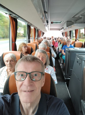 Schließlich hieß es Abschied nehmen. Doch selbst auf der Heimfahrt war die Stimmung bestens: Unser „Spätlese-Chor“ stimmte viele bekannte Lieder an, und der ganze Bus sang fröhlich mit. Unser Busfahrer Heinz fuhr mit uns durch den Spessart – wie schön ist doch unsere Heimat! Zuhause angekommen, ging jeder beschwingt und glücklich heim – mit vielen schönen Erinnerungen an einen gelungenen Tag.