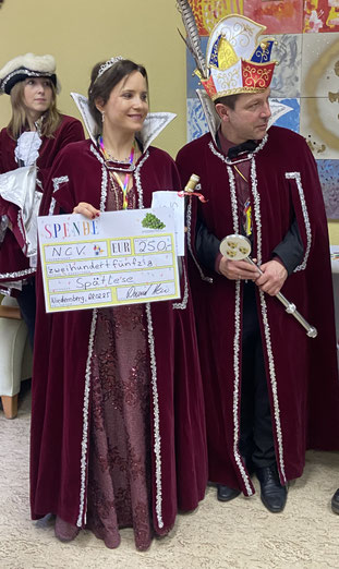 von einem Besuch des NCV, der das Prinzenpaar und das Kinder-prinzenpaar begleitete. Die Gäste übergaben eine Spende an die
