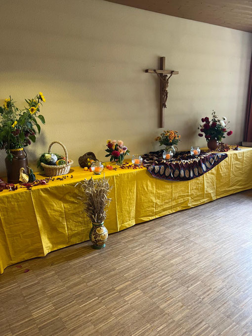 Mit Diakon Peter Ricker feierten wir gem-einsam eine Erntedankandacht. Für ihn stand das Ernten und Wachsen im Mittelpunkt seiner Andacht.